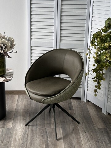 Обивка - экокожа спереди и букле сзади зеленого цвета.
