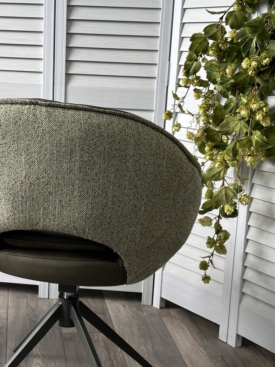 Обивка - экокожа спереди и букле сзади зеленого цвета.