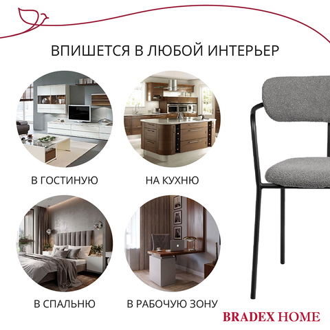 Спецификация: Материал: фанера, пенополиуретан, букле Ножки из метала окрашены в черный матовый цвет. Металлическая труба размер: Ø19мм. Толщина: 1.2мм Плотность пенополиуретана: 20кг/м³ на спинке, 25 кг/м³ в сиденье Размер: 58х54х79см Высота сиденья: 47,5см Вес: 5,2кг Максимальная нагрузка: 150кг Поставляется в разобранном виде. В комплекте идёт инструкция и комплект аксессуаров для сборки.