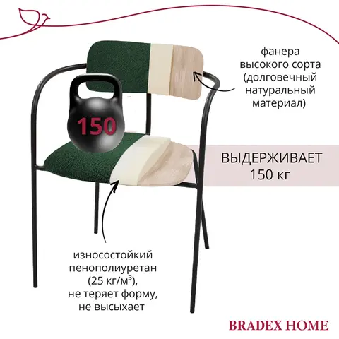 Спецификация: Материал: фанера, пенополиуретан, букле Ножки из метала окрашены в черный матовый цвет. Металлическая труба размер: Ø19мм. Толщина: 1.2мм Плотность пенополиуретана: 20кг/м³ на спинке, 25 кг/м³ в сиденье Размер: 58х54х79см Высота сиденья: 47,5см Вес: 5,2кг Максимальная нагрузка: 150кг Поставляется в разобранном виде. В комплекте идёт инструкция и комплект аксессуаров для сборки.