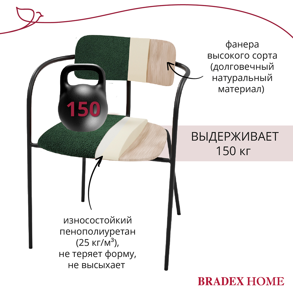 Стулья Ant — это идеальное сочетание стиля и удобства, которое добавит шарм в любую комнату дома или офиса. С их оригинальным дизайном и уникальной конструкцией, эти стулья привлекут внимание и станут центральным элементом интерьера. Стулья Ant представлены в двух видах ткани: Букле: Этот трендовый фактурный материал отличается природными благородными цветами, нежным комфортом и гипоаллергенностью. Букле устойчив к сминанию, не оставляет заломов и складок, легко очищается и хорошо пропускает воздух. Велюр: Для роскошного вида и мягкости, выберите велюр. Эта ткань также обладает высокой устойчивостью к износу, придает стульям элегантный вид и не оставляет зацепок. Износостойкость и комфорт: Стулья Ant изготовлены из высококачественных материалов: Пенополиуретан плотностью 25 кг/м³ сохраняет свою форму и не высыхает со временем. Фанера высокого сорта обеспечивает надёжность и безопасность использования. Металлические ножки диаметром 19 мм и толщиной 1,2 мм гарантируют стабильность и долговечность, выдерживая нагрузку до 150 кг. Стулья Ant обладают эргономичной спинкой, мягким сидением и удобными подлокотниками. Высота спинки 79 см обеспечивает комфортную поддержку, а изысканный минималистичный дизайн с черным металлическим каркасом и ножками придает стульям современный вид. Выбирайте стулья Ant для создания уютного и стильного интерьера, где каждая деталь продумана для вашего комфорта и эстетического удовольствия.