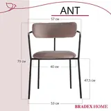 Стулья Ant обладают эргономичной спинкой, мягким сидением и удобными подлокотниками. Высота спинки 79 см обеспечивает комфортную поддержку, а изысканный минималистичный дизайн с черным металлическим каркасом и ножками придает стульям современный вид.