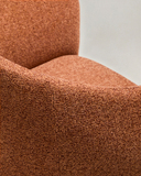Этот стул выделяется своим скульптурным дизайном, в котором обволакивающие формы гармонично сочетаются с утончённым, изысканным силуэтом. Широкое, уютное сиденье опирается на обитое фанерное основание с металлическим каркасом по периметру для защиты ткани. Обивка выполнена из мелкоструктурированного шенилла: мягкого на ощупь, прочного для ежедневного использования и изготовленного из 100% переработанного полиэстера от поставщика, сертифицированного по Глобальному стандарту переработки. Эта ткань обработана водоотталкивающими составами и имеет сертификат OEKO-TEX® S.