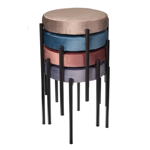 Спецификация: Материал: фанера, пенополиуретан, велюр Ножки из метала окрашены в черный матовый цвет. Металлическая труба размер: Ø22мм. Толщина: 1.1мм Плотность пенополиуретана в сиденье: 25 кг/м³ Размер: 45х45х49см Диаметр сиденья: 40см. Высота сиденья: 49см Вес: 2,8кг Максимальная нагрузка: 150кг Рекомендуется штабелировать не более 4 шт, во избежание повреждения обивки и наполнителя. Поставляется в разобранном виде. В комплекте идёт инструкция и комплект аксессуаров для сборки.