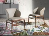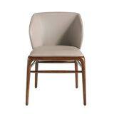 Стул обтянут светло-коричневым кожзаменителем, цвет Acua 18. Структура из ясеня окрашена в ореховый цвет. Сиденье и спинка из полиэфирной пены плотностью 35 кг / м3.
