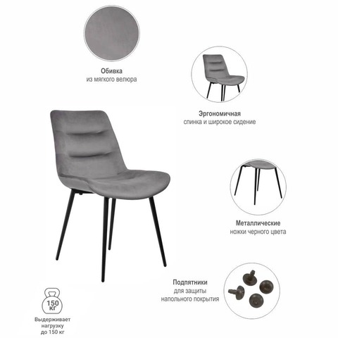 Стулья Chester на устойчивом металлическом каркасе с сиденьем эргономичной формы в нежной велюровой обивке придется по душе любителям комфорта и уюта.