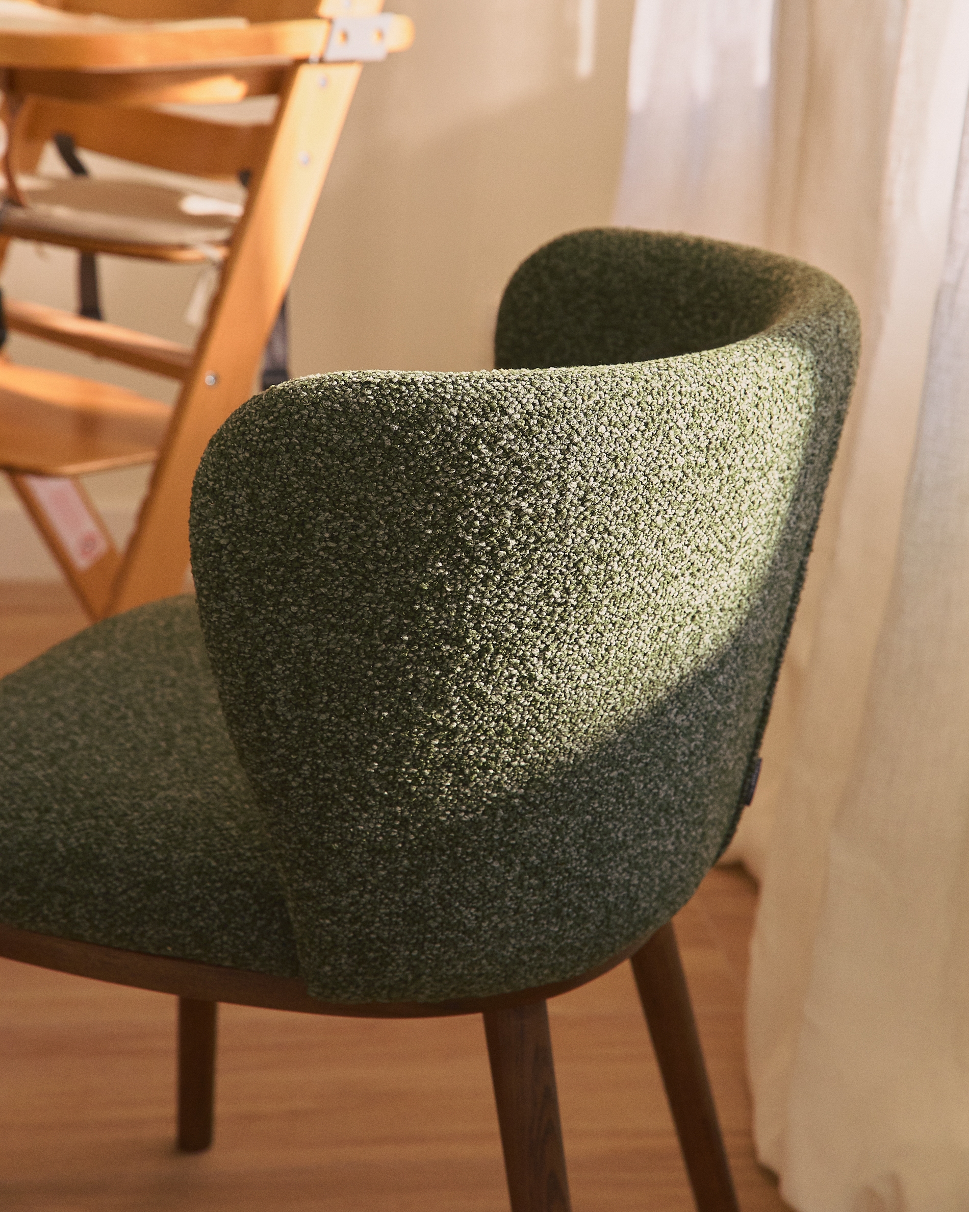 Стул Ciselia из темно-зеленого шенилла с ножками из ясеня в отделке орех