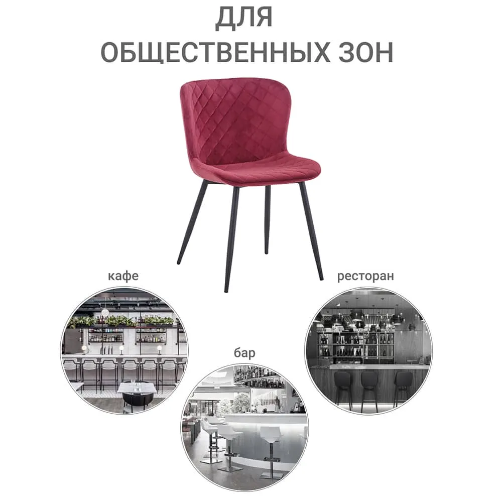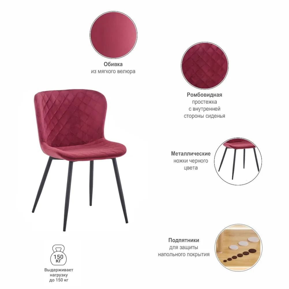 Ножки стула имеют прочную конструкцию, выполнены из металла окрашенного в чёрный цвет. Насыщенные цвета обивки станут акцентом в любом интерьере.