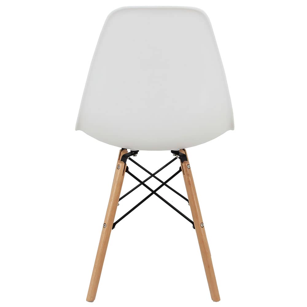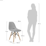 Сиденье выполнено из матового полипропилена, ножки и опоры из массива бука и металла.