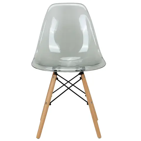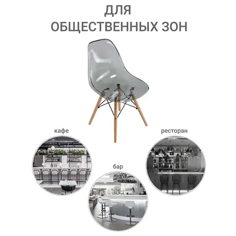 Сиденье выполнено из прозрачного поликарбоната, ножки и опоры из массива бука и металла.