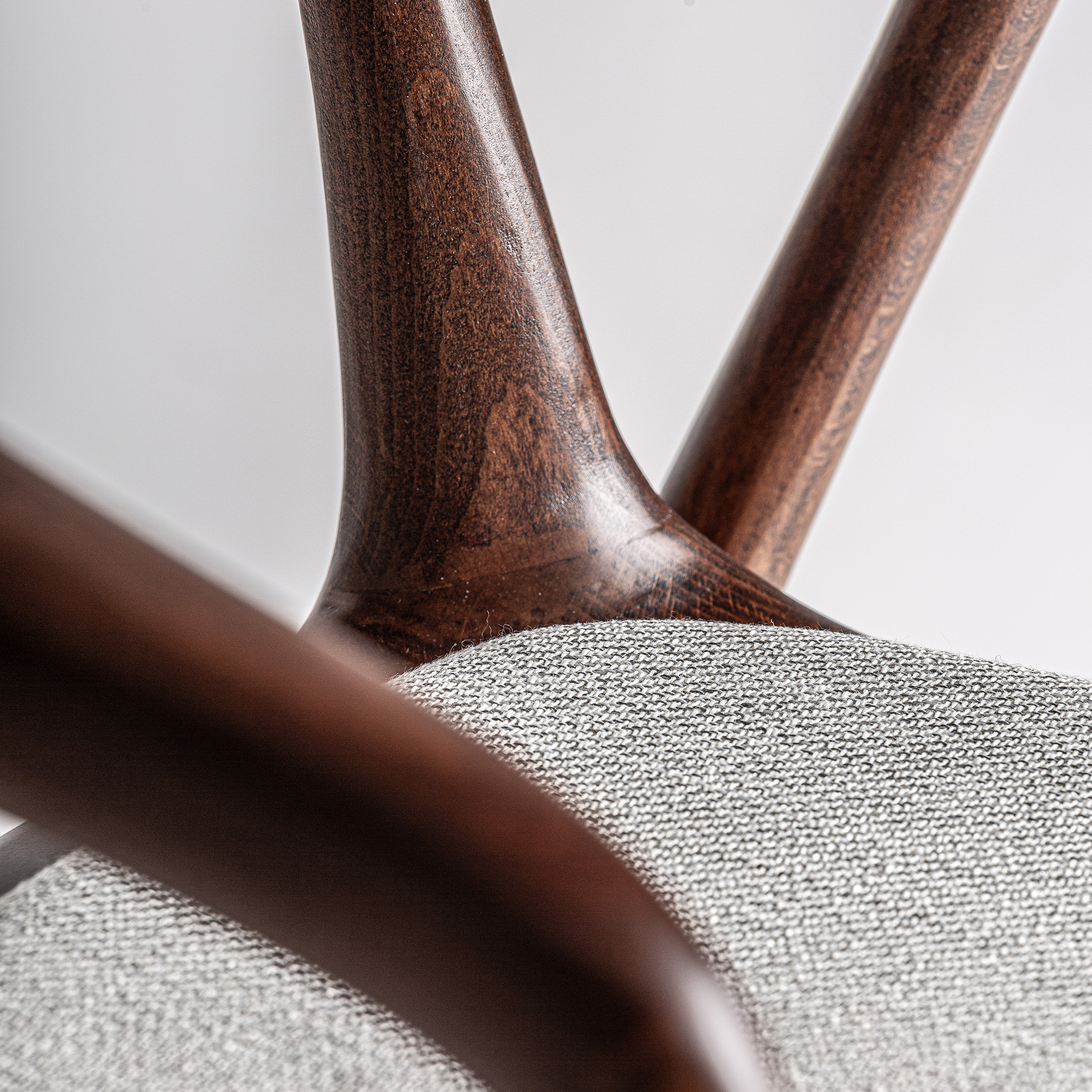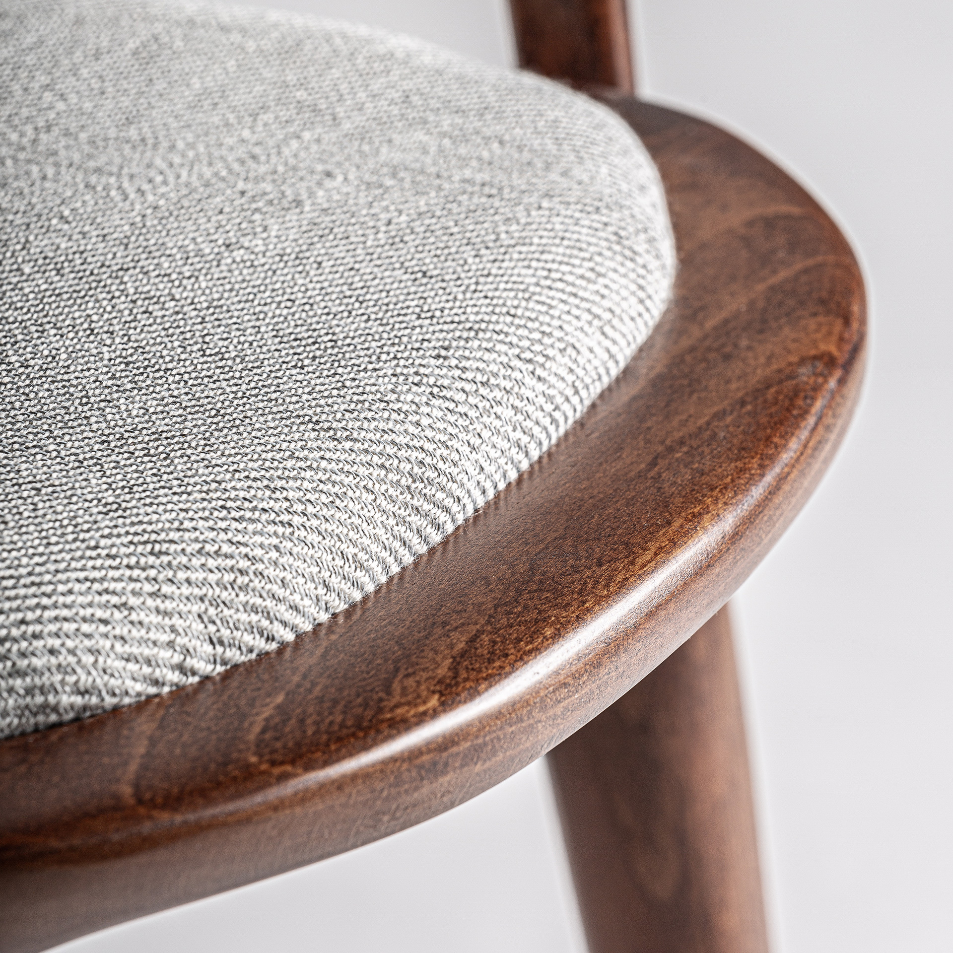 Кресло Eauze сочетает в себе современный дизайн и комфорт с классическим, обволакивающим силуэтом. Изготовленное из коричневого бука, оно отличается характерным сиденьем, обитым полиэстером серо-лилового цвета, который добавляет текстуру и современный штрих. Универсальное и элегантное изделие, созданное для интерьеров, где важна каждая деталь. Ширина: 58 см, Глубина: 53 см, Высота: 70 см