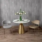 Ножки стула выполнены из полированной нержавеющей стали с напылением нитрида титана, что создает эффект натурального золота. Это придает стулу элегантный и роскошный вид.
