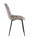 Кухонный стул в мягкой обивке из велюра без подлокотников. Анатомическая форма сиденья обеспечивает удобство, а декоративная стяжка придает объём и защищает от образования вмятин. Металлические ножки с крестовидным каркасом выдерживают значительные нагрузки. Подпятники ножек не испортят напольное покрытие и предохраняют от скольжения. Лаконичный дизайн украсит любой кухонный интерьер.Замок на спинке стула несёт декоративный характер и не предназначен для снятия обивки.