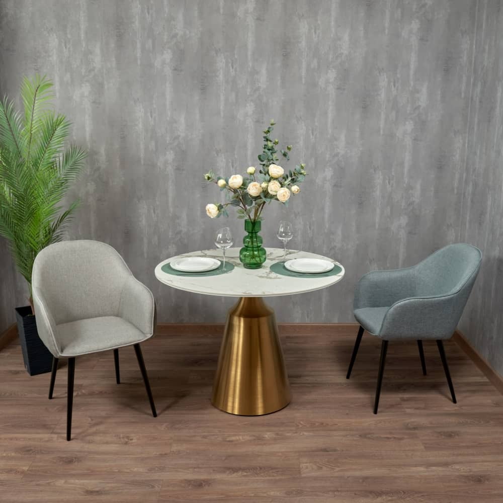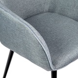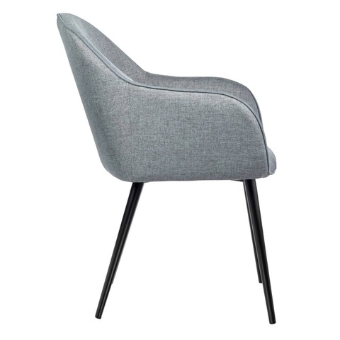 Хотите купить кресло? Не спешите! Стул Frida такой же мягкий и удобный, как кресло и тоже имеет подлокотники. При этом он намного легче, мобильнее и занимает меньше места. Отличительная особенность серии в использовании удобных подлокотников и мягкой рогожки для обивки. Нейтральный серо-синий цвет подчеркнет классический интерьер. Сочетание серо-синего и черного цветов — это классика, в которой стулья для кухни или гостиной подчеркнут строгость и изысканность интерьера. А металлические ножки будут отлично сочетаться с мебелью с аналогичными ножками или фурнитурой.