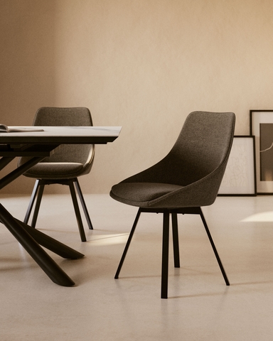 Стул Haston от фабрики La Forma (ex Julia Grup) – современный комфорт и практичность. Стул Haston будет отличным вариантом для современной городской обстановки, будь это кухня, кабинет или столовая. Его универсальный дизайн и показательный комфорт – два свойства, которые делают модель абсолютно применимой. Ножки из металла в стильном исполнении – акцент на индивидуальность модели. Приятный бонус – встроенный поворотный механизм. Обстановка не станет скучной – она приобретает стильное и полезное дополнение. Стул имеет каркасную основу, которая обита синтетической пеной плотностью 24 кг/м3 и обшита износостойким текстилем. Обивочный материал имеет плотность 280 г/м, в составе 100 % полиэстер. Цвет ткани зависит от выбранной модели – графитовый, серый, горчичный. Материал поддается чистке от загрязнений, не выгорает от воздействия ультрафиолета. Опора сделана из металла и окрашена в черный цвет матовой порошковой краской. Она оснащена поворотным механизмом, который вращает сиденье на 360 градусов. Ножки имеют высоту 48 см, дополнены пластиковыми наконечниками, которые защищают напольное покрытие от повреждений. Максимальная допустимая нагрузка на стул – не более 130 кг. Размеры стула: ширина – 45 см, высота – 86 см, глубина – 59 см. Вес – 8,5 кг Потребуется небольшая самостоятельная сборка.