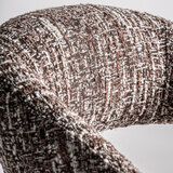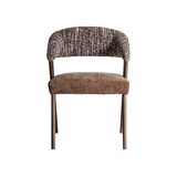 Стул Kamenz в современном стиле, изготовлен из коричневого полиэстера с пятнистой отделкой в сочетании с коричневым дубом и каучуковым деревом.