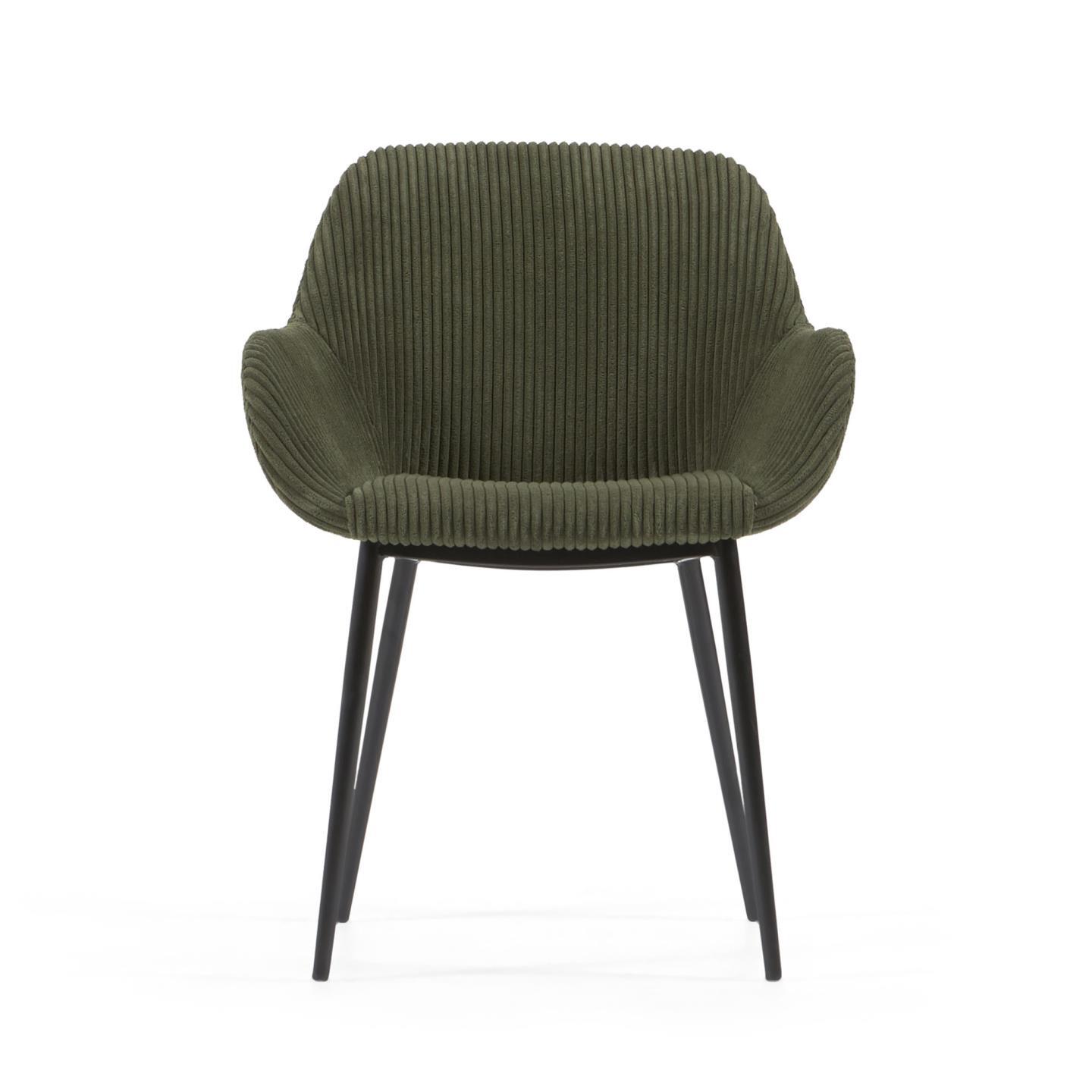 Стул Konna из толстого вельвета темно-зеленого цвета со стальными ножками с черной отделкой