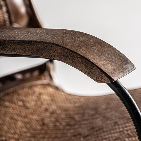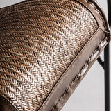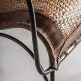 Стул Кроком, коричневый, винтажный стиль. Изготовлен из кожи в сочетании с железом и ротангом.