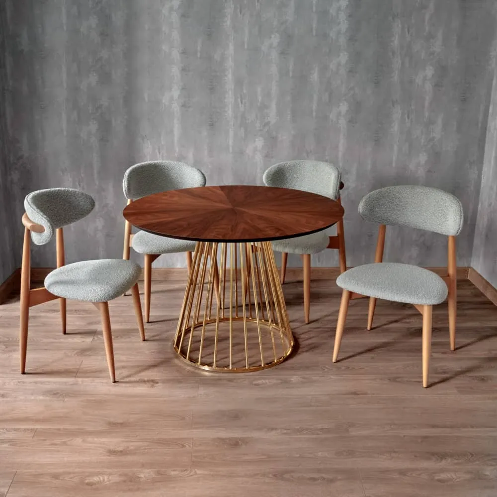 Сиденье и спинка изготовлены из высокоустойчивой ткани букле в тёмно-сером оттенке. Мягкие спинка и сидение обеспечивают максимальный комфорт. Оригинальный каркас из массива натурального дерева в цвете орех добавляет стулу элегантность. Стулья из бука отличаются прочностью и надежностью.
