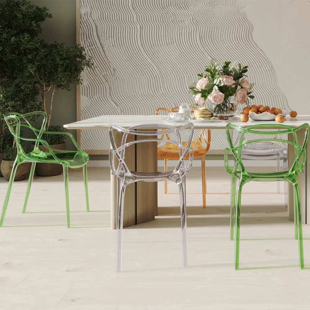 Варианты матовых отделок и металлизированного эффекта пластика расширяют возможность реализаций со стульями Masters в разных по стилю и дизайну помещениях