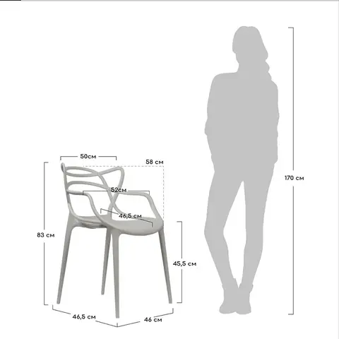 Спецификация: Материал: поликарбонат Размер: 55x58x81см Высота сиденья: 47см Вес: 5кг. Максимальная нагрузка 150кг Штабелируется до 6шт Поставляется в собранном виде.