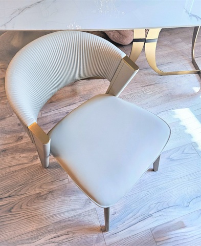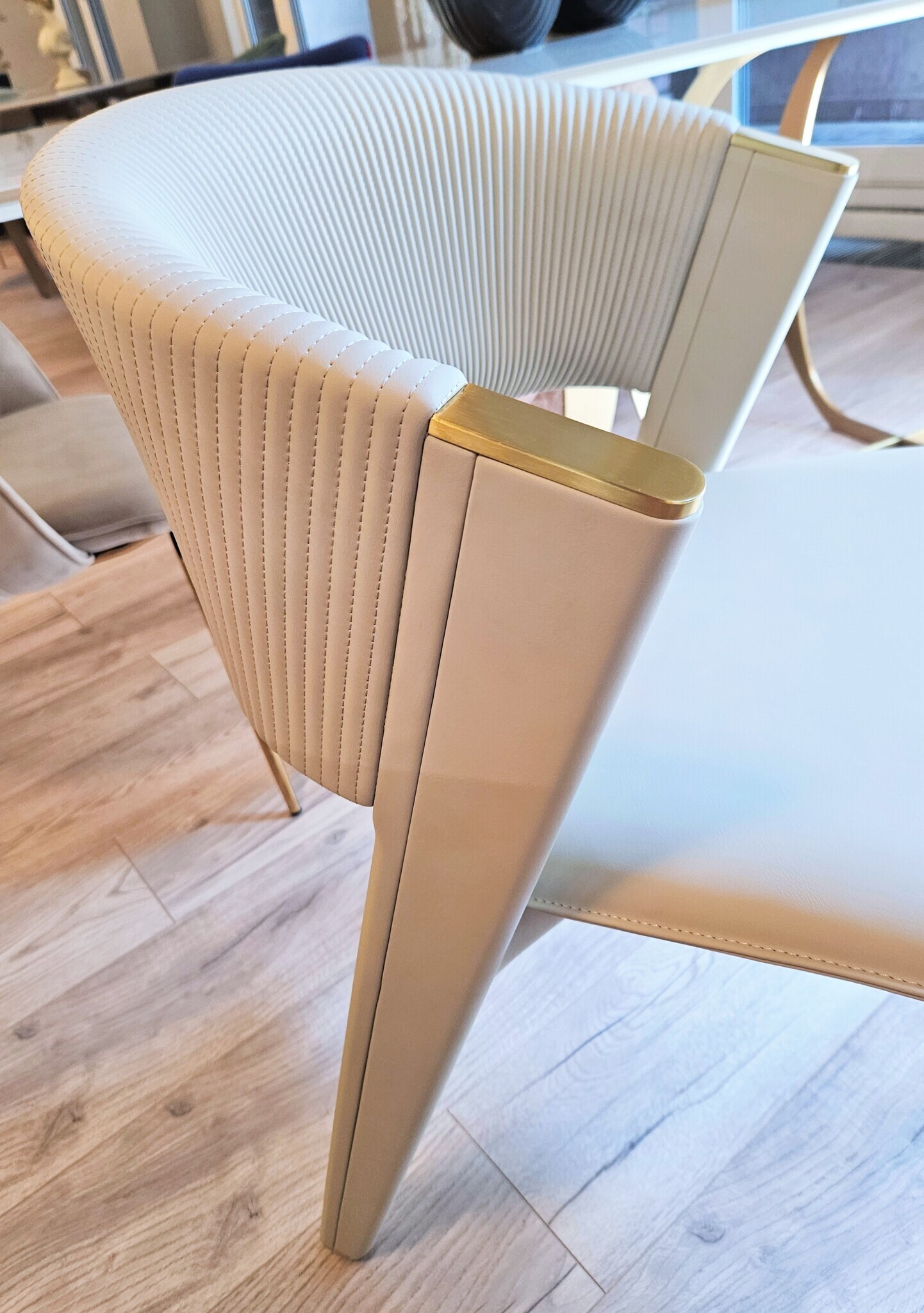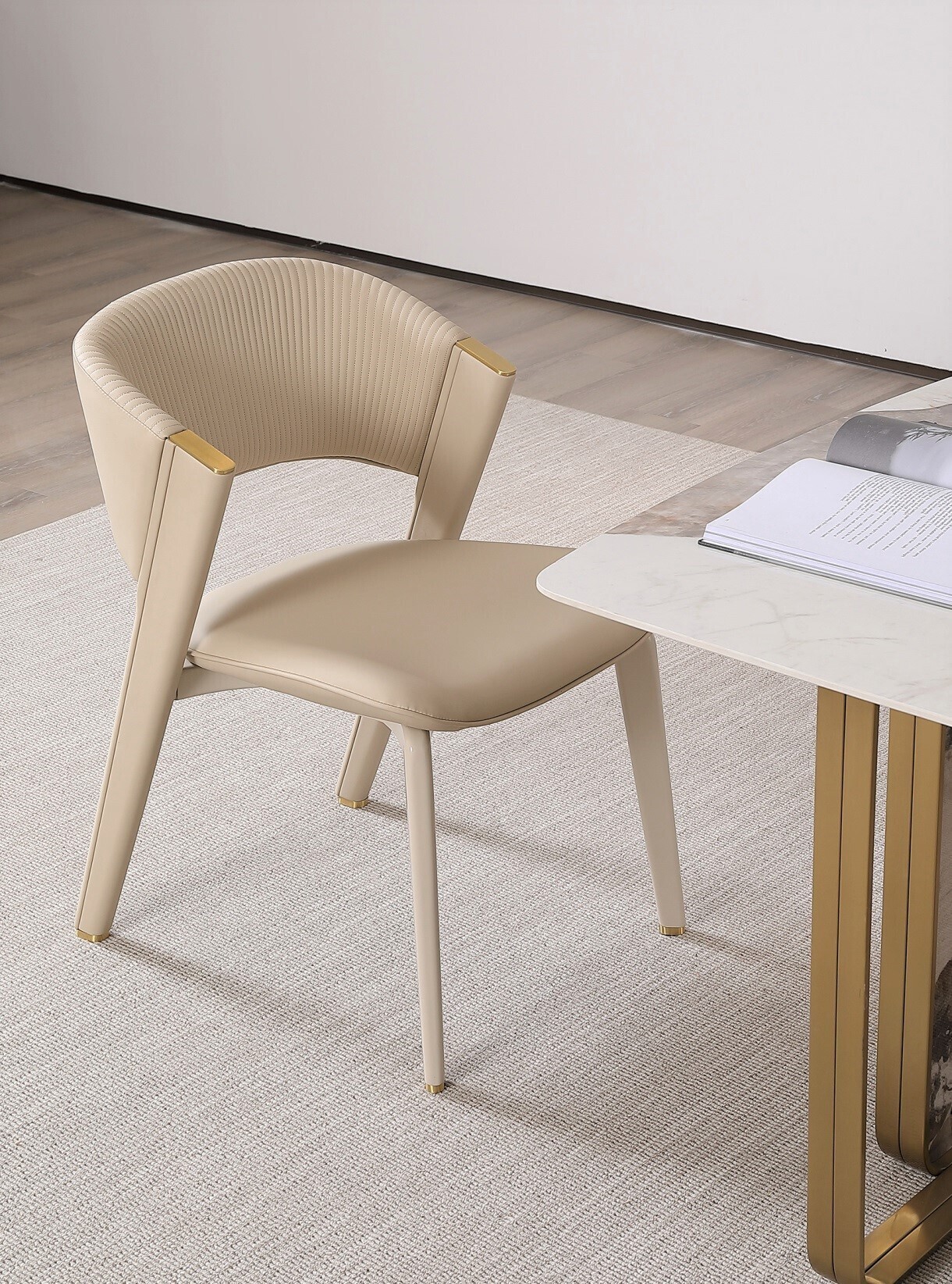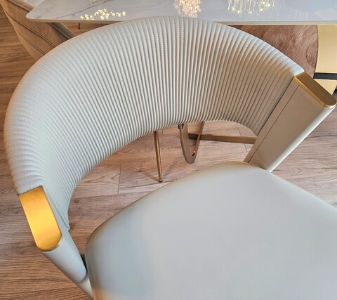 Ножки стула с золотыми вставками, изготовлены из массива дерева, который является долговечным натуральным материалом. Наполнитель - формовочная пена. Стул представлен в износостойкой экокоже кремового цвета.