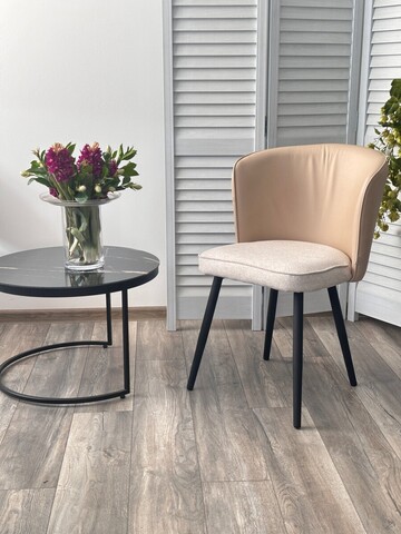 Комбинированная обивка: сиденье - ткань цвета АЙВОРИ, спинка - экокожа пудрового цвета.