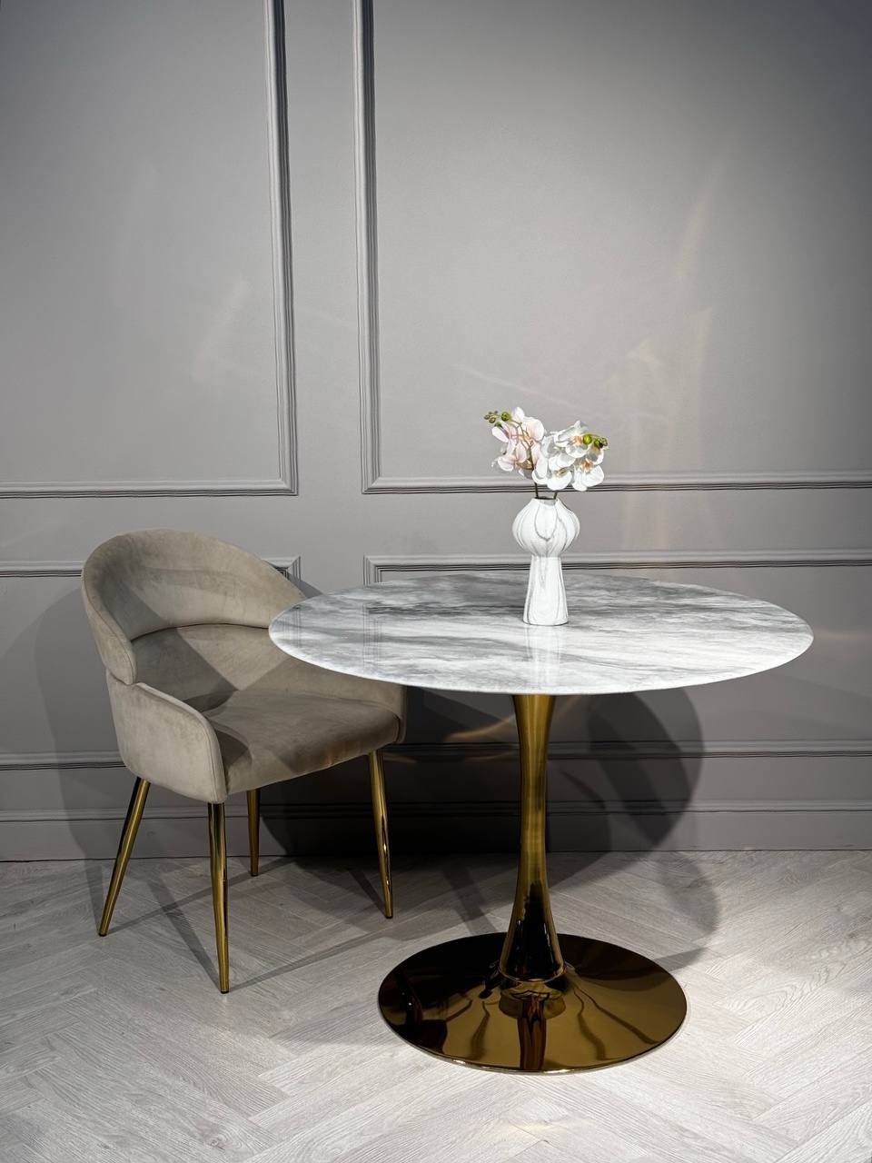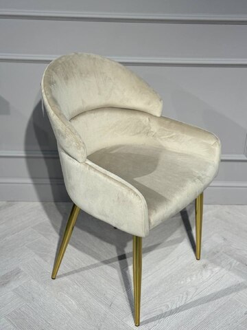 Стул обеденный Сидение и спинка - велюр, цвет: бежевый Ножки металлические, глянцевое золото 47х54х89 см Страна производитель: Китай Гарантия 1 год