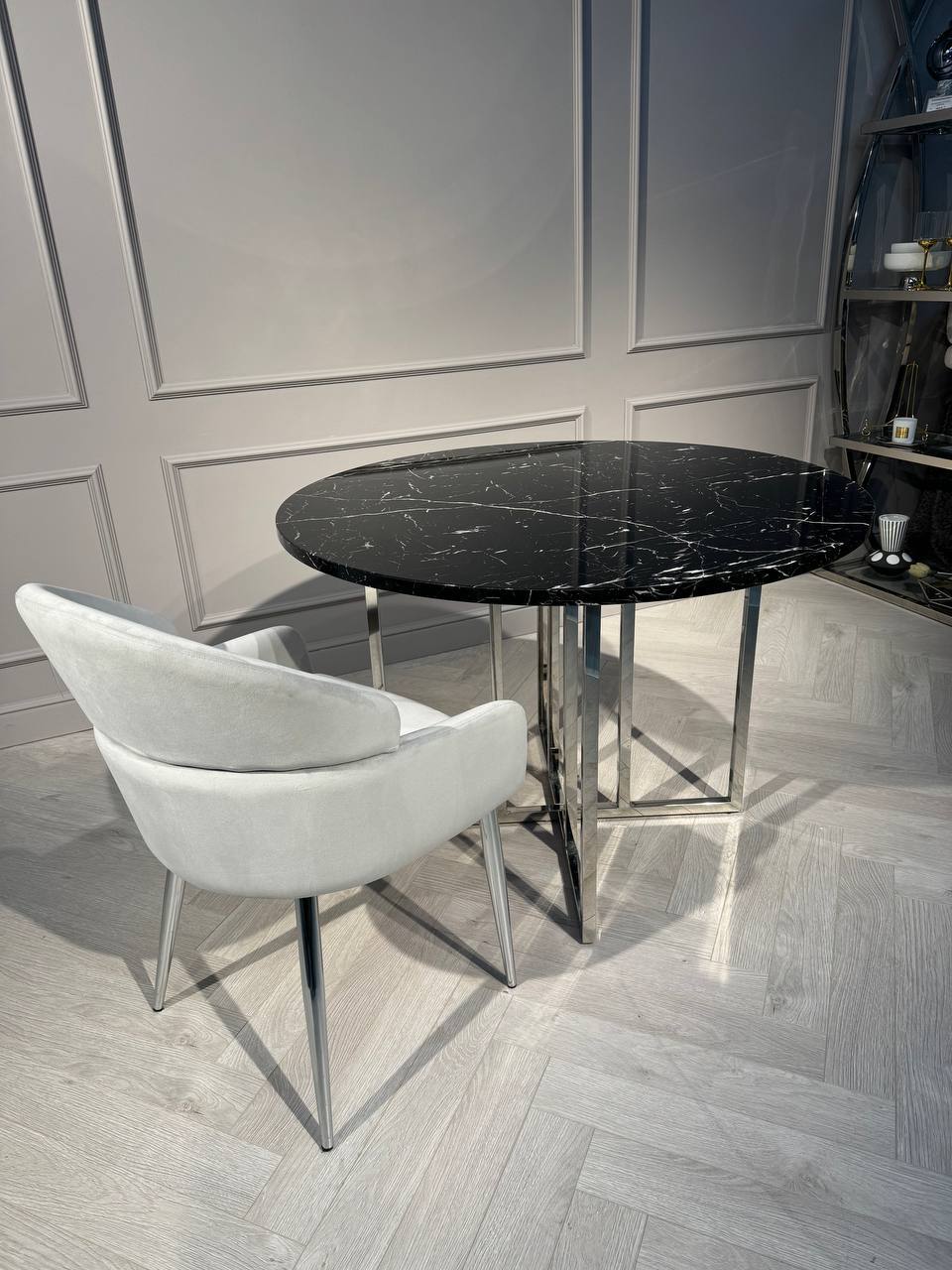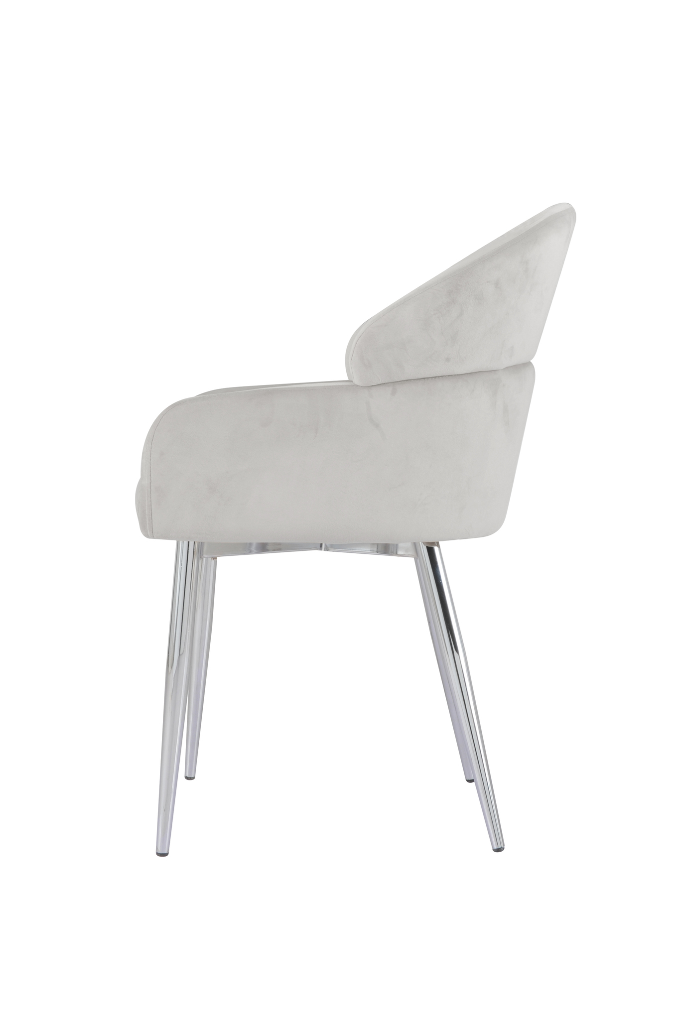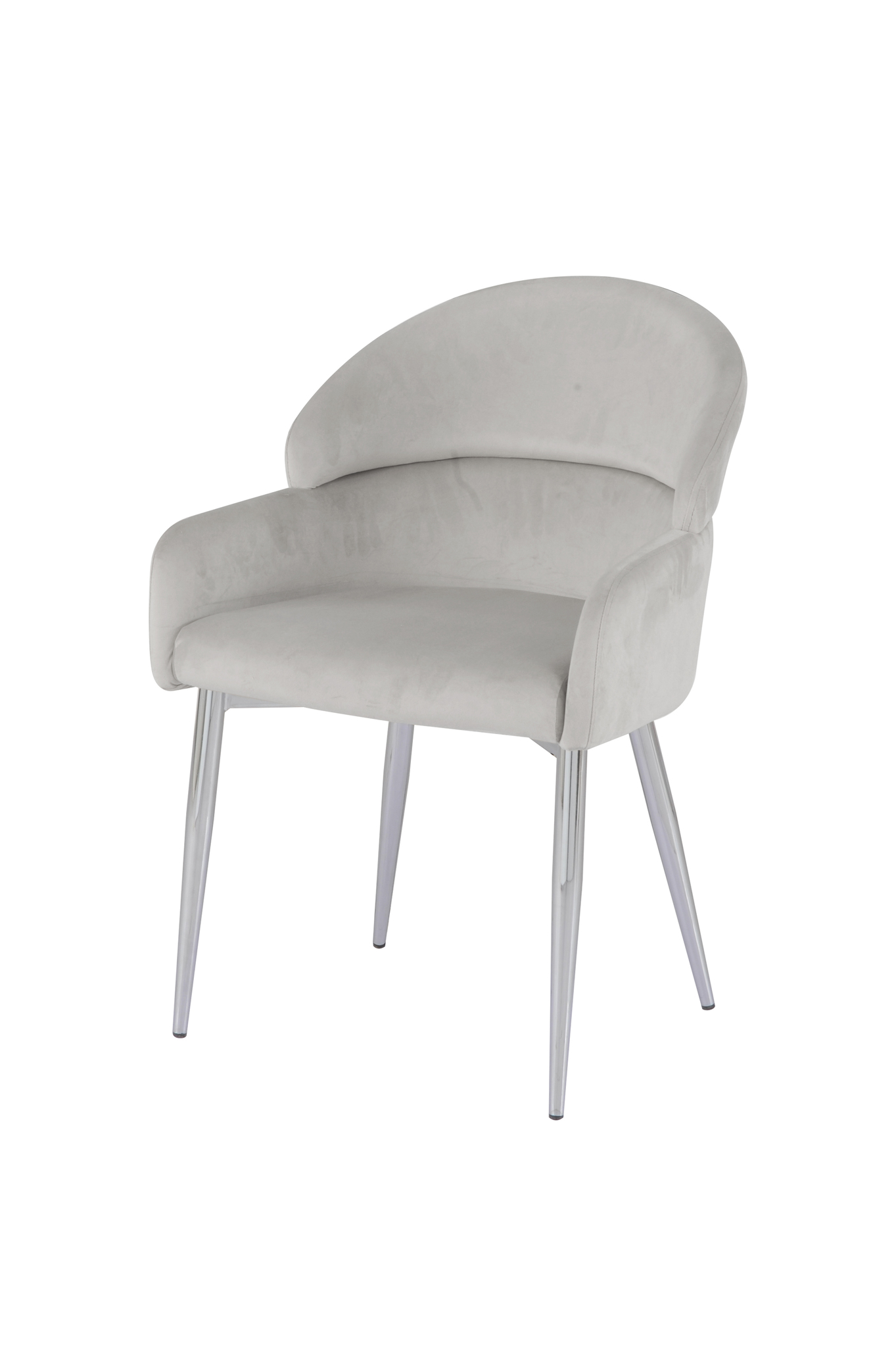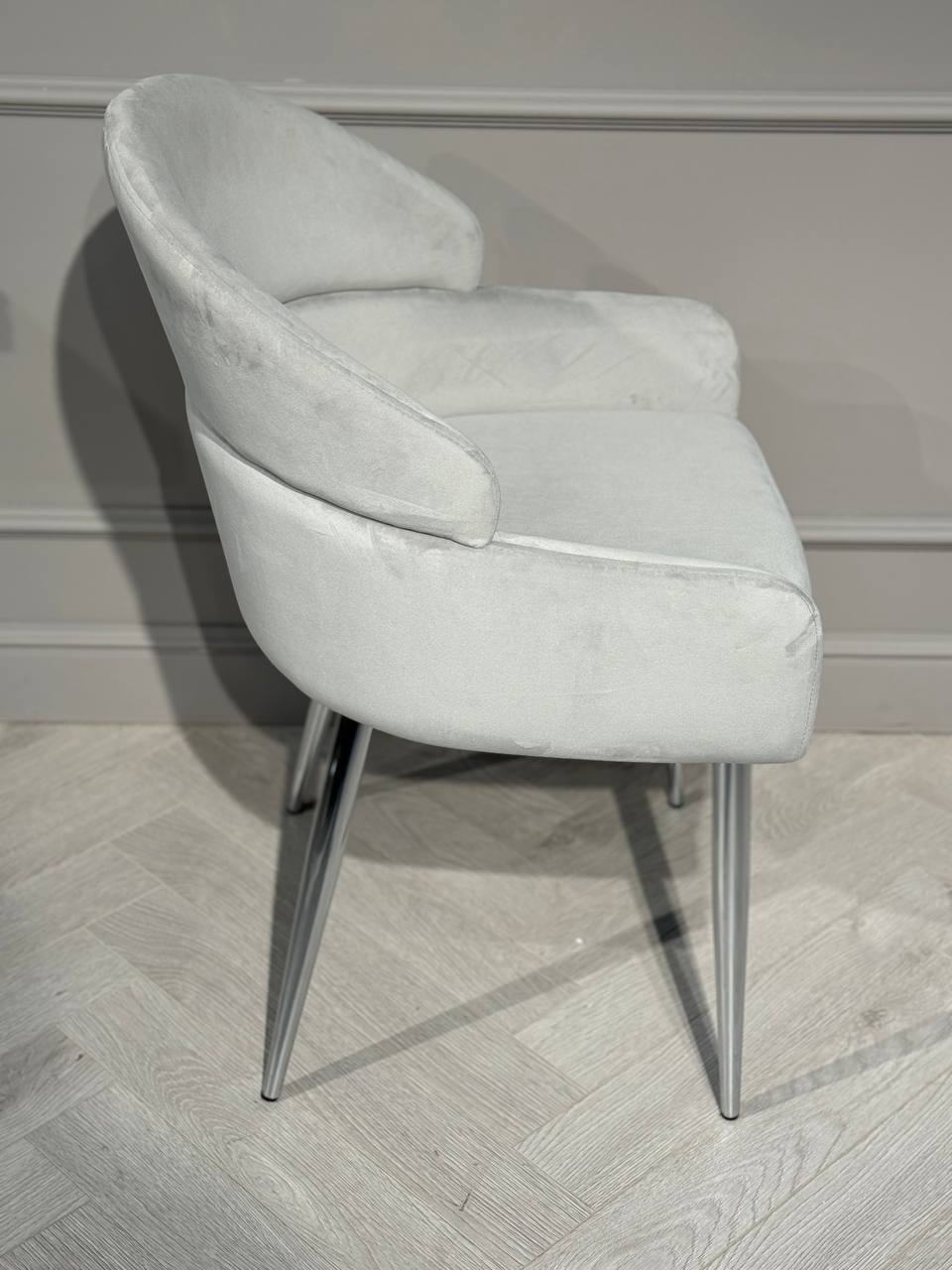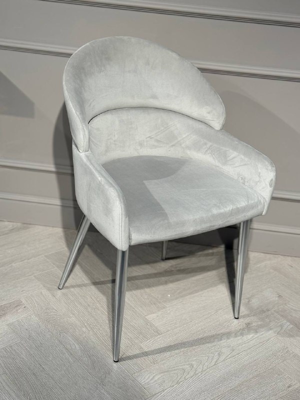 Стул обеденный Сидение и спинка - велюр, цвет: жемчужно-серый Ножки металлические, хром 47х54х89 см Страна производитель: Китай Гарантия 1 год