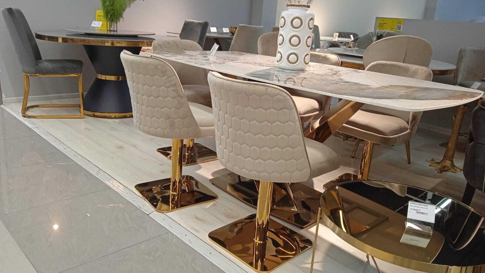 Стул обеденный Лоренсо DC-3988 — это гармония утонченного стиля, современной функциональности и максимального комфорта. Этот обеденный дизайнерский стул станет стильным акцентом в вашей столовой или кухне, добавляя интерьеру света, текстурности и архитектурной выразительности. Сиденье и спинка выполнены из мягкого бежевого велюра — материала, который придает изделию благородный внешний вид и приятную тактильную мягкость. Бежевый цвет универсален: он не теряет актуальности, легко сочетается как со светлыми, так и с контрастными поверхностями и подходит для интерьеров в стиле скандинавский минимализм, современная классика и гламурный лофт. Этот мягкий вращающийся обеденный стул со спинкой обеспечивает комфорт даже при длительном использовании. Спинка имеет плавный изгиб, поддерживающий поясницу, что делает его идеальным для семейных завтраков, вечерних ужинов или торжественных приемов. Особенность модели — вращающийся механизм (360 градусов), позволяющий легко поворачиваться без необходимости вставать. Это особенно удобно на кухонных островах или в компактных столовых, где важна мобильность и свободное перемещение. Каркас выполнен в виде единой ножки из нержавеющей стали с гальваническим покрытием цвета золото, обеспечивающей прочность, устойчивость и яркий декоративный эффект. Гальваническое напыление устойчиво к царапинам и коррозии, сохраняет блеск на протяжении многих лет. Этот обеденный стул из велюра органично вписывается в интерьеры квартир, домов, ресторанов и бутик-отелей. Он одинаково хорошо смотрится как в паре, так и в комплекте из нескольких штук вокруг обеденного стола. Благодаря продуманному дизайну и качественным материалам, обеденный стул станет долгосрочным решением для тех, кто ценит сочетание стиля, комфорта и функциональности. вращающийся (360 градусов) Сидение и спинка - велюр, цвет: бежевый Ножка из нержавеющей стали с гальваническим покрытием, цвет - золото Ш46хГ43хВ89 см Страна производитель: Китай Гарантия 1 год