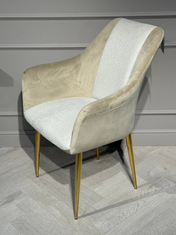 Стул обеденный Лючия с комбинированной обивкой, спинка и подлокотники обиты велюром, сидение и внутренняя сторона спинки обита рогожкой. Ножки выполнены из металла в цвете глянцевое золото Размер: 70х70х90 см Цвет: бежевый Высота до сидения: 52 см 2шт/1кор Вес нетто: 7,65кг Вес брутто: 9,43кг Размер упаковки: 80х65х80 см Гарантия 1 год