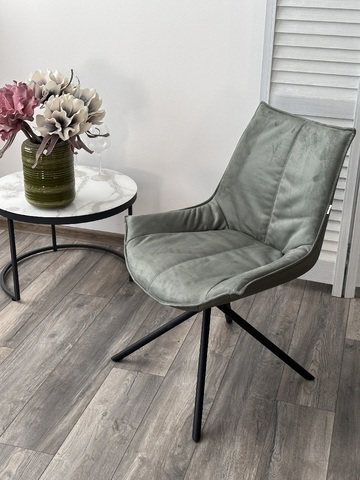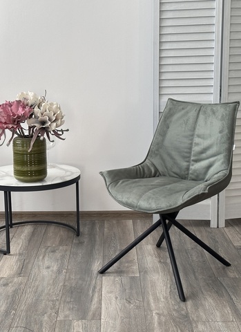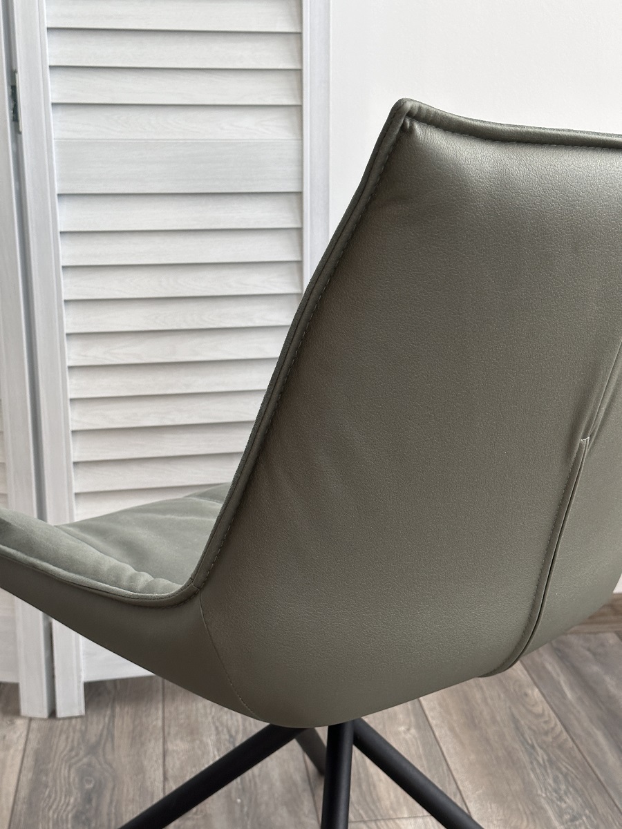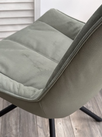 Комбинированная обивка: посадочная часть - искусственная замша зеленого цвета, задняя часть - экокожа зеленого цвета.