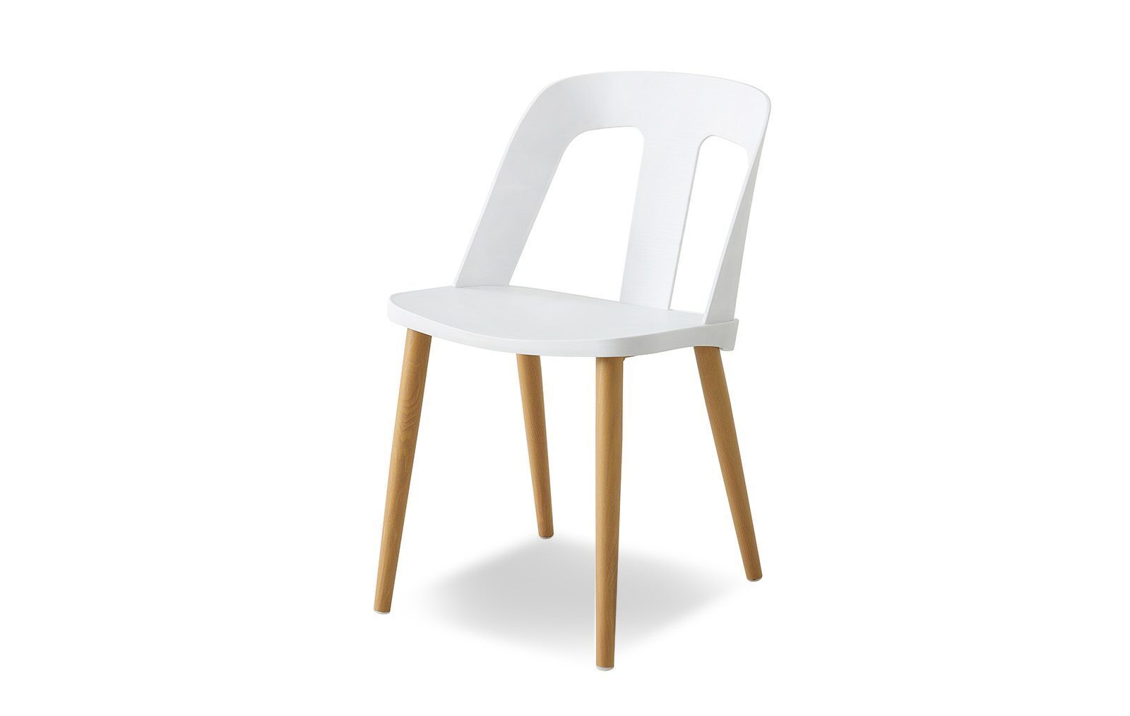 Эргономичная спинка и сиденье из высококачественного пластика ABS, ножки металл с покрытием под дерево.