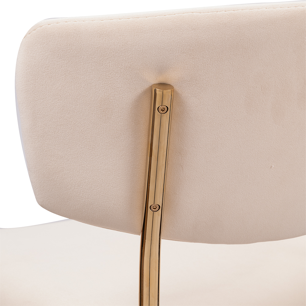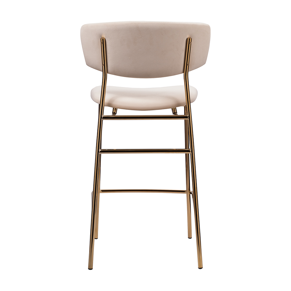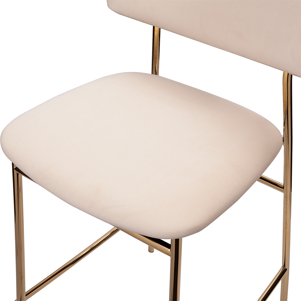 Полубарный стул Elle — идеальное решение для кухни. Стул имеет комфортное подножие и удобную высоту, подходящую под стандартные кухонные островки. Стул выполнен в необычном и стильном дизайне, который непременно привлечёт внимание гостей. Главная особенность стула — оригинальный каркас из двух металлических стержней, к которым крепятся мягкая спинка и сиденье, обтянутые велюром Romano. Этот материал обладает высокой плотностью, не мнётся и подходит для всех видов мебели. Его шелковистая поверхность приятна на ощупь, а дополнительный принт придаёт ткани уникальность и глубину. Ножки стула изготовлены из полированной нержавеющей стали с покрытием из нитрида титана, что создаёт эффект натурального золота и придаёт изделию роскошный вид. Дизайн стула идеально впишется в современный интерьер, оформленный в стиле модерн или минимализм. Благодаря своей лаконичности и удобству посадки стул станет отличным дополнением для гостиной, столовой или спальни. В коллекции также представлены стулья Elle обычной высоты для обеденной группы. Они гармонично сочетаются с полубарным стулом, образуя красивую композицию.