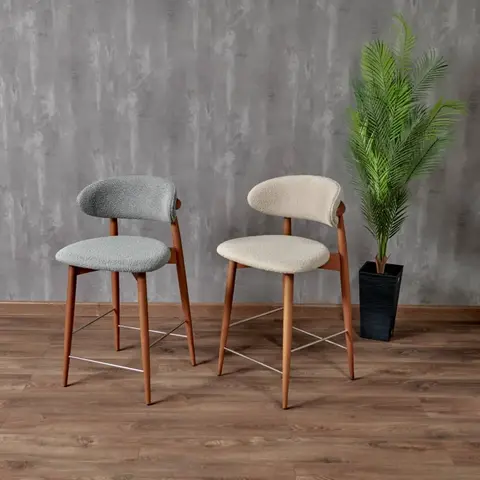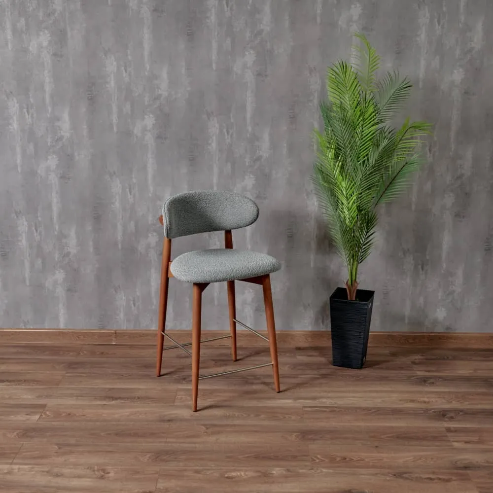 Стул полубарный Lucas светло-серый букле с ножками цвета орех