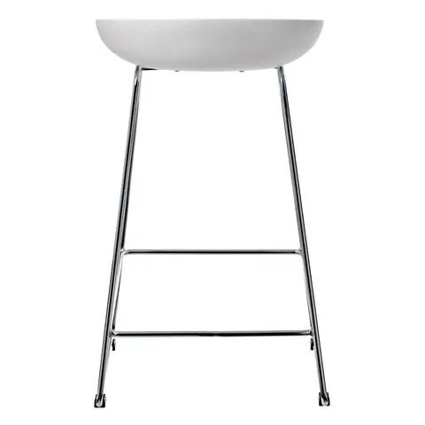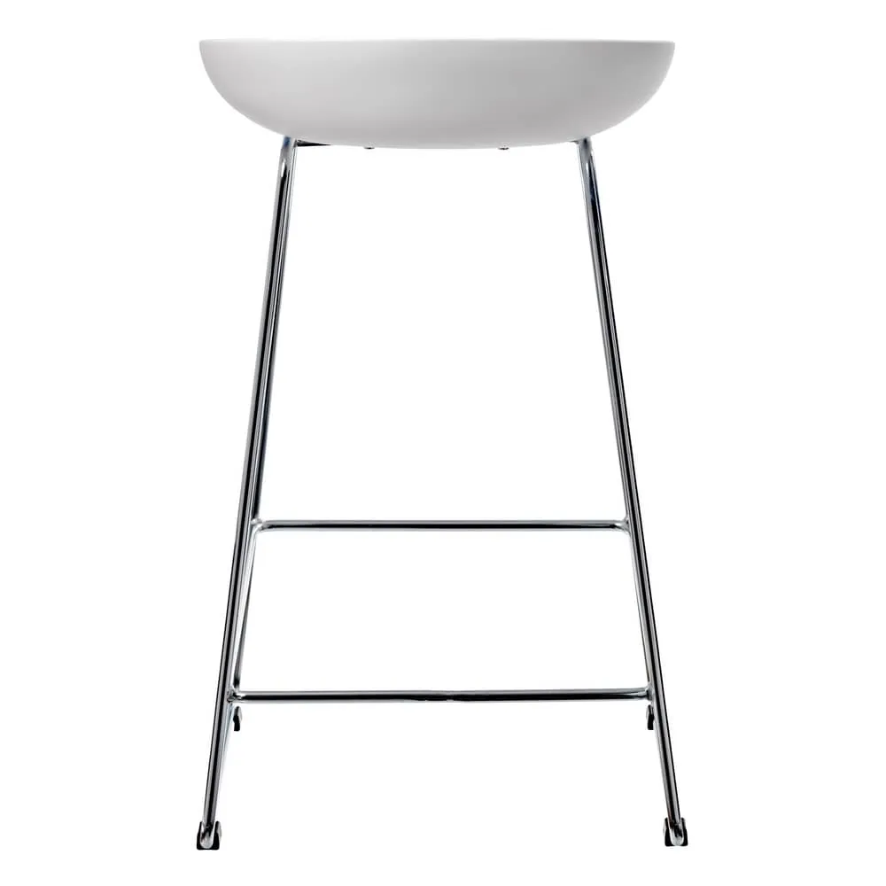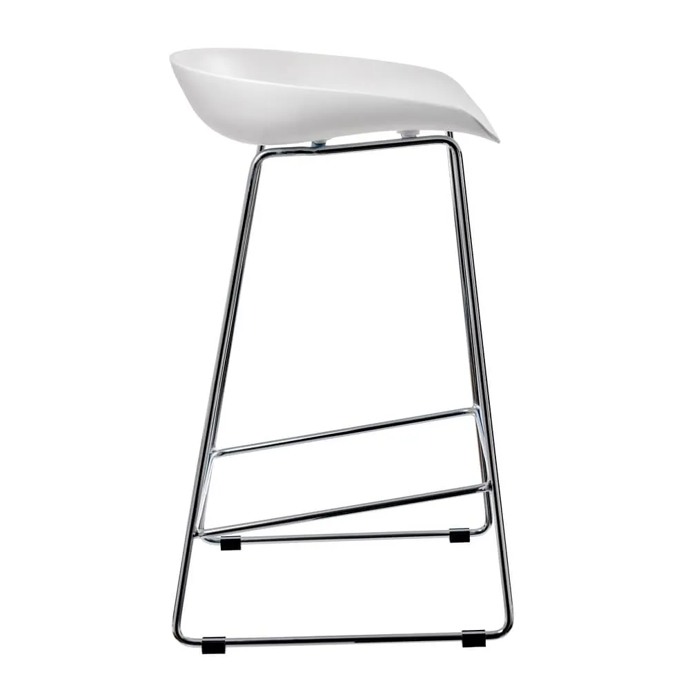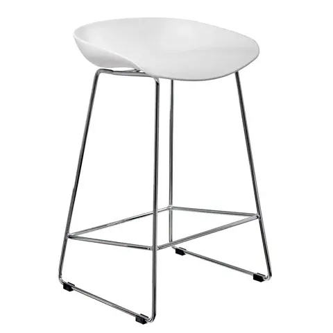 Утончённые металлические хромированные опоры, сиденье из пластика с невысокой спинкой - это минималистический современный дизайн полубарного стула NEO белый.