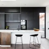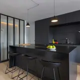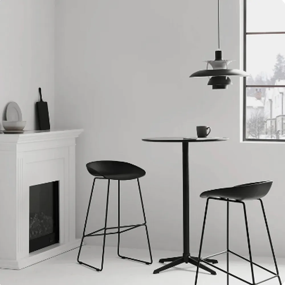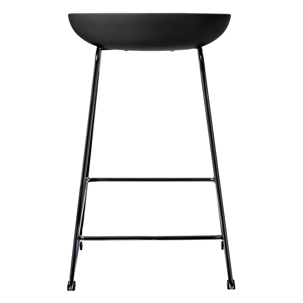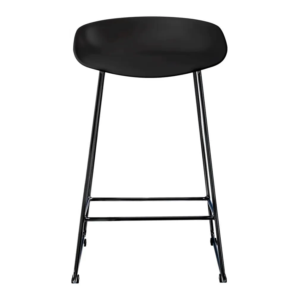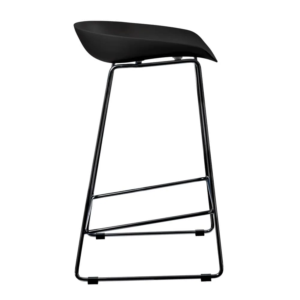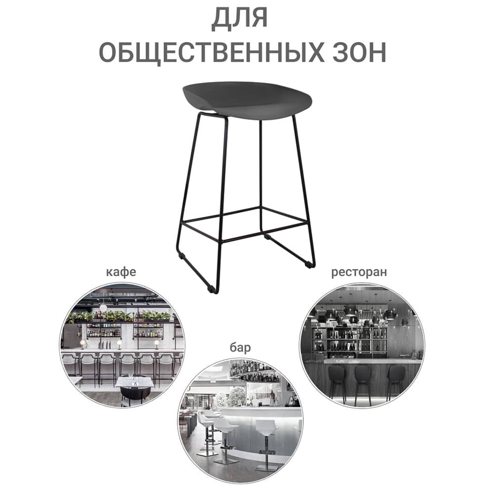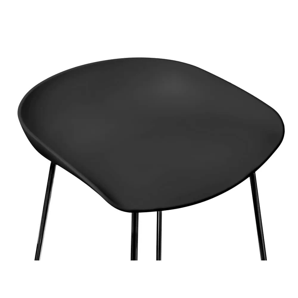 Утончённые металлические опоры, сиденье из пластика с невысокой спинкой - это минималистический современный дизайн полубарного стула NEO черный с черными ножками.