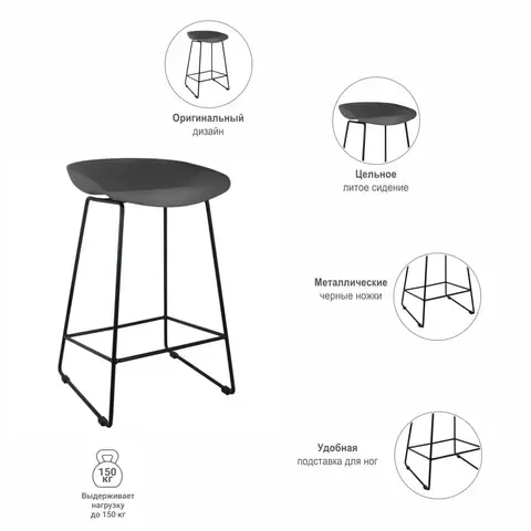 Спецификация: Материал сиденья: полипропилен Материал ножек: металл Размер: 43x43x73см Высота сиденья 65см. Вес: 6кг Максимальная нагрузка: 150кг
