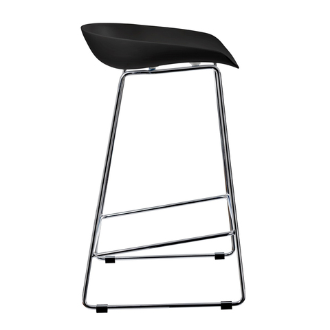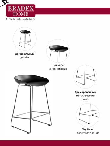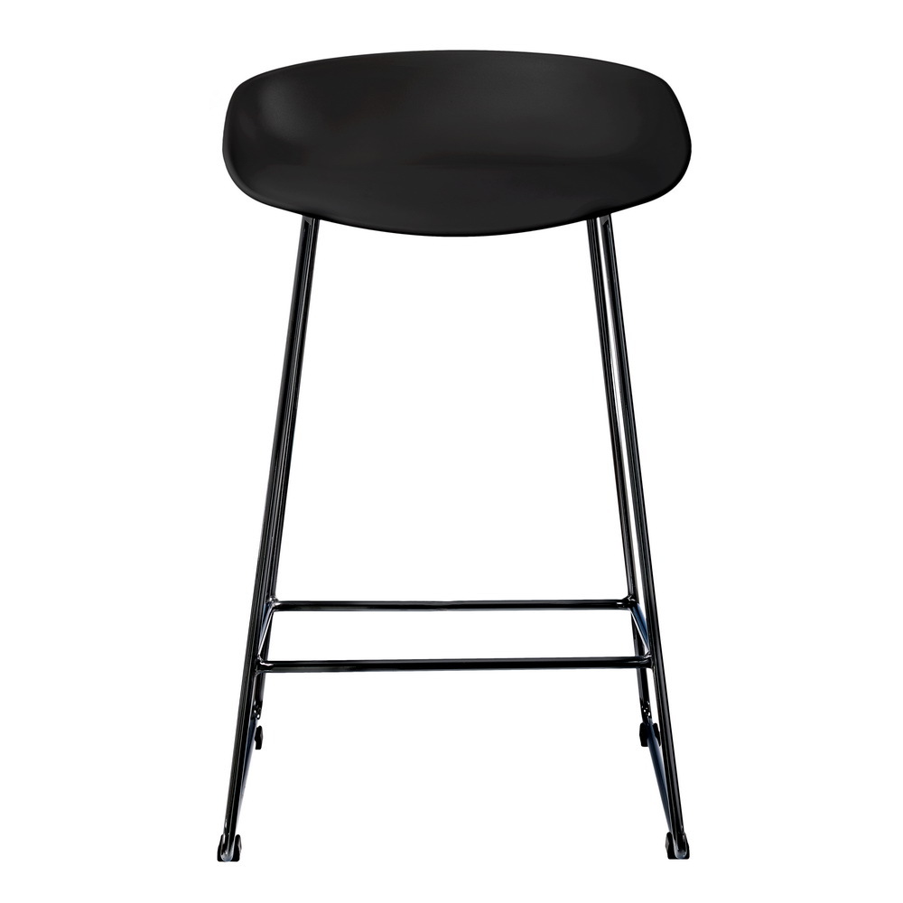 Утончённые металлические опоры, сиденье из пластика с невысокой спинкой - это минималистический современный дизайн полубарного стула NEO черный с черными ножками.