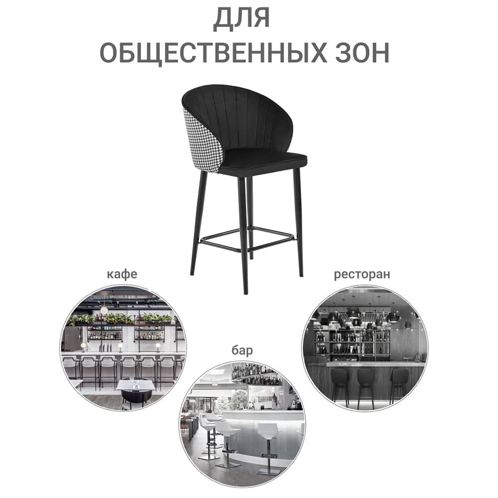 Стул полубарный Paola чёрный с жаккардом