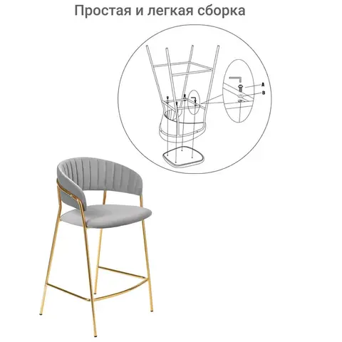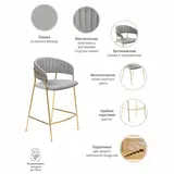 Полубарный стул Turin серый с золотыми ножками повторяет дизайн моделей стульев Turin и Avatar, что позволяет реализовать различные пространства помещения в едином стилевом решении.