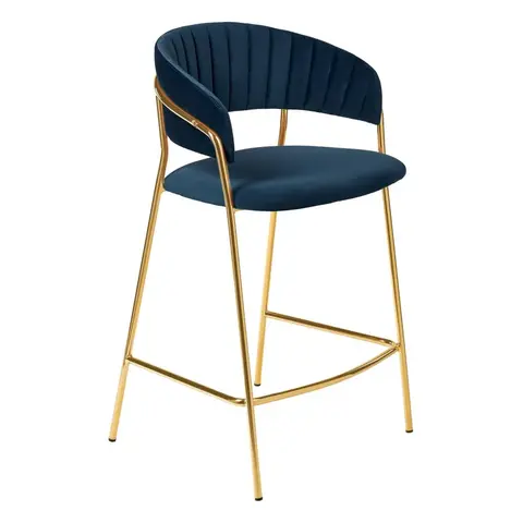 Стул полубарный Turin синий с золотыми ножками