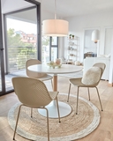 Стул Quinby от La Forma (ex Julia Grup) — практичный, легкий, универсальный предмет интерьера для любых помещений. Стул моментально убеждает в своей универсальности. Изящный и эргономичный дизайн, стильная фактура сиденья, практичный и легкий материал изготовления — все это позволяет «примерить» данную модель под любое помещение. А привлекательная стоимость всего за пару минут убеждает сделать заказ. Стул конструкционно состоит их двух частей — это цельное сиденье и опора с ножками. Сиденье анатомической формы сделано из прочного переработанного пластика. Его толщина гарантирует стойкость к высоким весовым нагрузкам и эксплуатацию без потери первоначального внешнего вида. Сетчатая фактура выглядит современно, оригинально, а также несет практичный смысл — так с изделия проще удалить влагу, загрязнения. Опора металлическая, окрашена в тот же цвет, что и сиденье. Этот материал прочный, долговечный, способный выдерживать высокие нагрузки. Главная особенность этого стула — практичность и универсальность. Пластик не боится влаги, он уместен в любом современном интерьере, как дома, так и на работе. Поэтому изделие можно эксплуатировать в помещении или на улице, в офисе или гостиной, в кафе или на террасе. Размеры: ширина — 46 см; высота — 82 см; глубина — 58 см. В коллекции представлены стулья в четырех цветах: белом, черном, желтом, бежевом. Также для комплектности можно приобрести аналогичные барные и полубарные стулья.