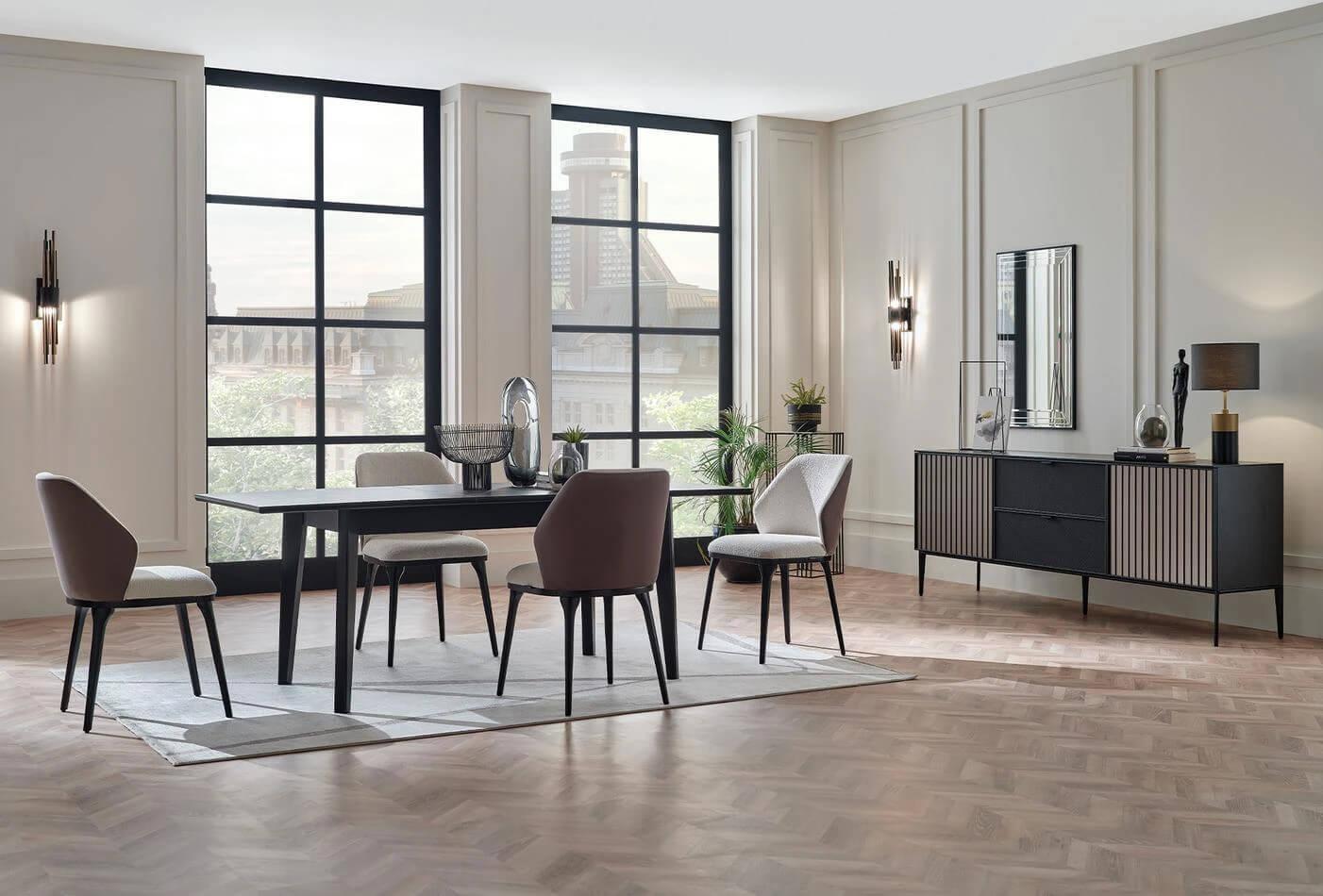 Стул Riga отлично сочетается со всеми предметами из коллекции корпусной мебели Riga