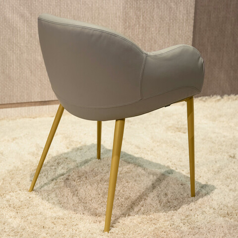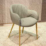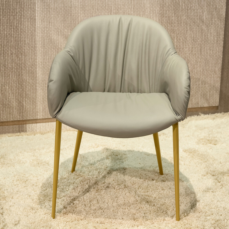 Стул c подлокотниками на металлическом каркасе обтянут натуральной кожей из ассортимента фабрики. Наполнитель с эффектом памяти memory.