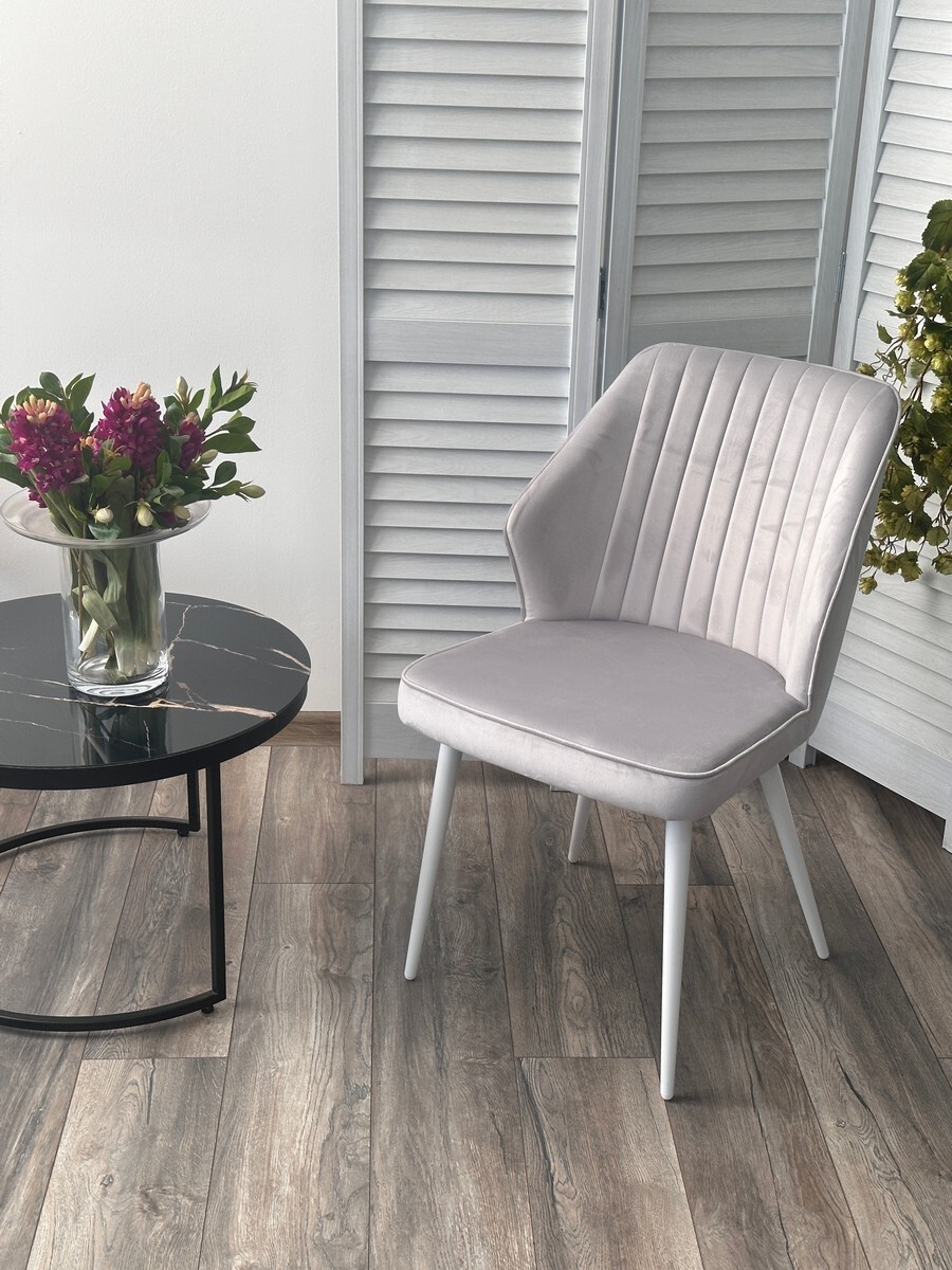 Стул SEATTLE-V СВЕТЛО-СЕРЫЙ BM-4, велюр / белый каркас М-City