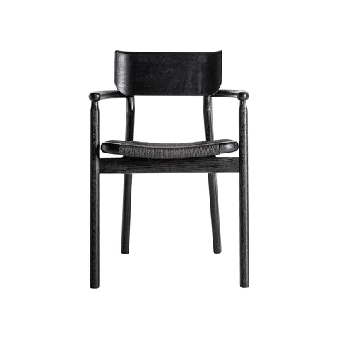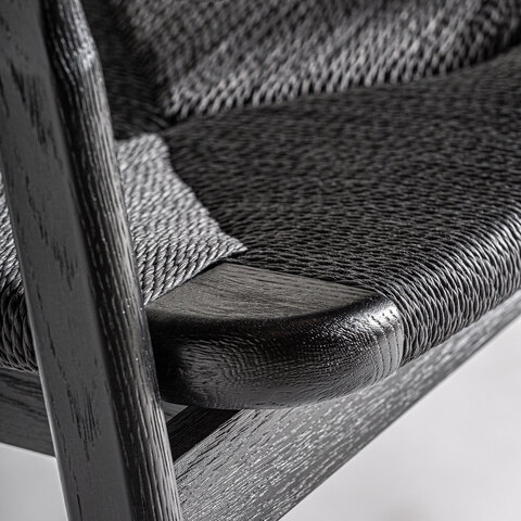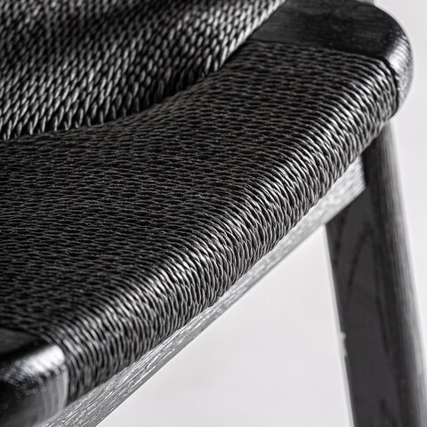 Стул Tasque, черный, винтажный стиль. Изготовлен из древесины дуба в сочетании с натуральным волокном. Ширина: 54 см, Глубина: 54 см, Высота: 78 см