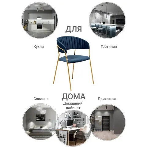 Стул Turin синий с золотыми ножками
