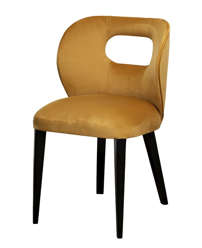 Велюровый стул горчичного цвета UNICO – красивая стильная мебель с выверенной эргономикой, актуальным дизайном и обивкой из мягкого первоклассного велюра. Дизайнерский мягкий стул подходит как для классической обстановки, так и для современных интерьеров. Износостойкий велюр насыщенного цвета, комфортная форма спинки, устойчивый каркас из дерева – все это превосходно впишется в обстановку гостиной, столовой, рабочего кабинета. Стул Unico выполнен в ткани велюр Colton 022-Orang. Опоры дерево(бук), цвет опор №4. Габариты стула: ширина-50см, глубина-47см, высота-81см. Габариты сиденья стула: ширина-46см, глубина-42см, высота-45см.Данная модель доступна для заказов только в тканях из коллекции: Colton,Романтика, Paddington.