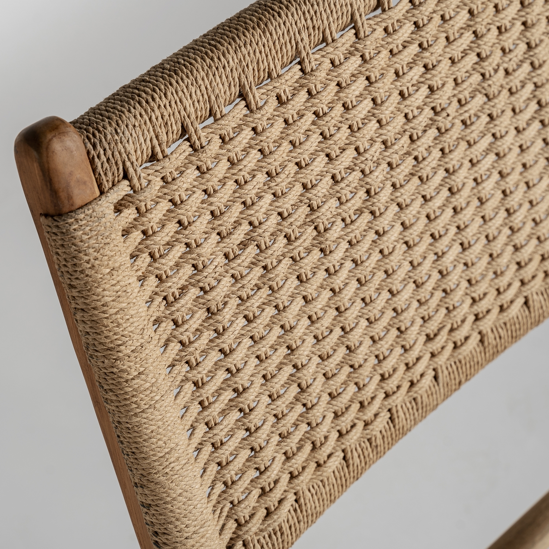 Стул Vaduz в колониальном стиле, изготовлен из коричневого тикового дерева в сочетании с натуральным волокном.